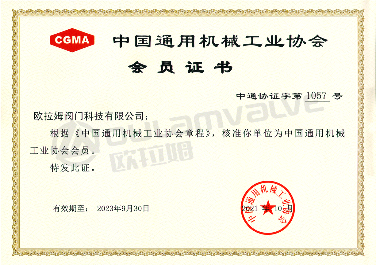 中國通用機械工業協會會員證書
