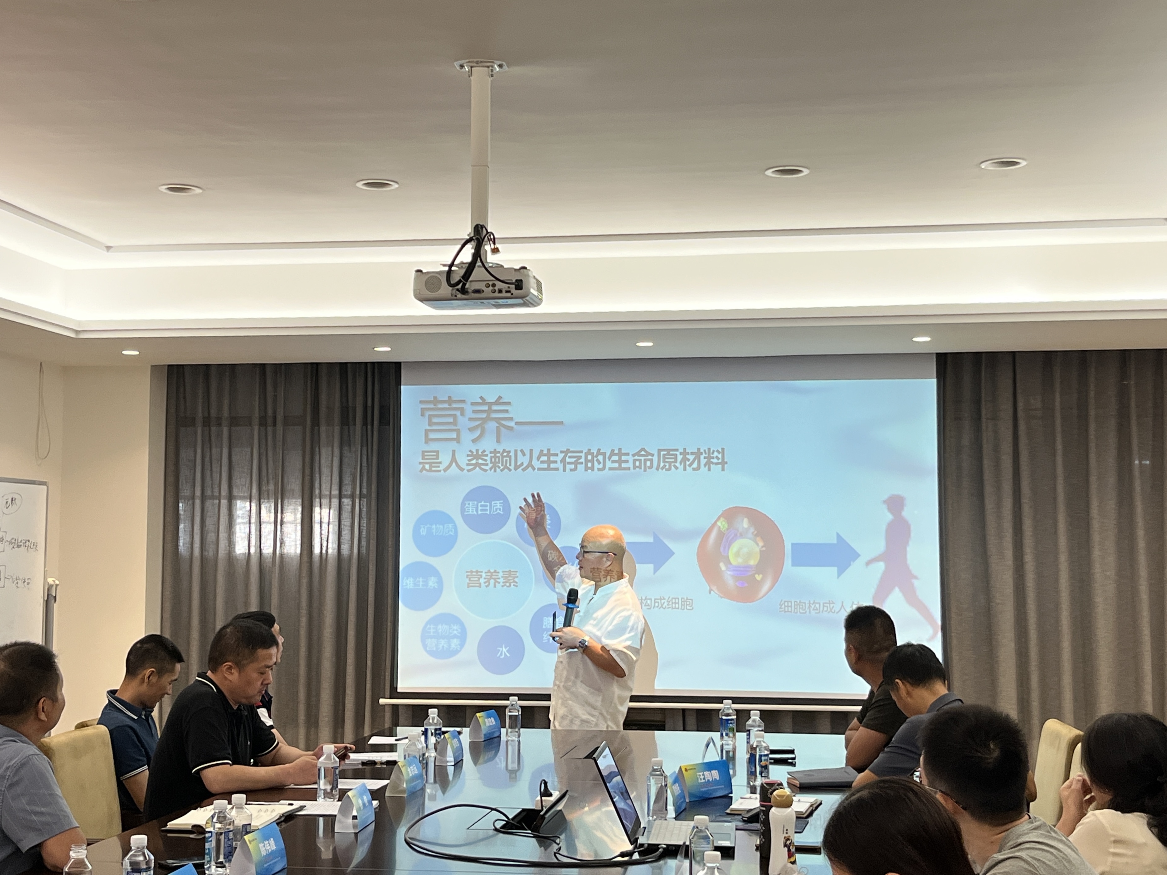 會議還特別邀請浙江省大眾健康科學研究院副院長周煜佐、溫州南塘中醫(yī)藥發(fā)展有限公司陳國芝老師,為與會人員做了精彩的全民健康營養(yǎng)知識講座。周煜佐深入淺出地講解了營養(yǎng)素的重要性,幫助我們糾正了日常生活中的一些營養(yǎng)知識誤區(qū)。陳國芝則分享了“治未病”的理念,強調健康生活方式的重要性。