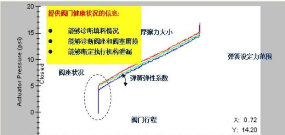 提供曲線并分析數據包括填料摩擦力(直行程閥門),摩擦力矩(旋轉閥),閥座關緊力,彈簧預緊力等,以判斷閥門填料,閥座,彈簧和執行機構有關的問題或故障。